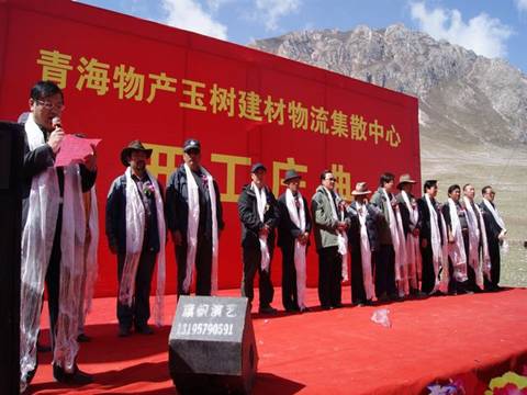 省玉樹地震災(zāi)后重建現(xiàn)場指揮部指揮長、副省長馬順清宣布建材物流集散中心正式開工并講話。省政府副秘書長巨偉、省經(jīng)委、省城鄉(xiāng)住房建設(shè)廳、西寧市政府、玉樹州政府相關(guān)部門、玉樹縣有關(guān)負責(zé)同志,省物產(chǎn)集團總經(jīng)理王玉輝、黨委書記白家林、副總經(jīng)理物產(chǎn)化工公司董事長耿保平等參加了開工儀式。
